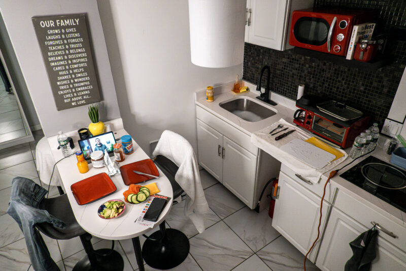 Ein letztes Frühstück stand an – in eben jener Wohnung, die uns trotz mancher Umstände ein Zuhause auf Zeit geworden war. Da wir zu diesem Zeitpunkt bereits keinen Strom mehr in der Wohnung hatten, lief alles über ein einziges Verlängerungskabel aus einem anderen Raum.