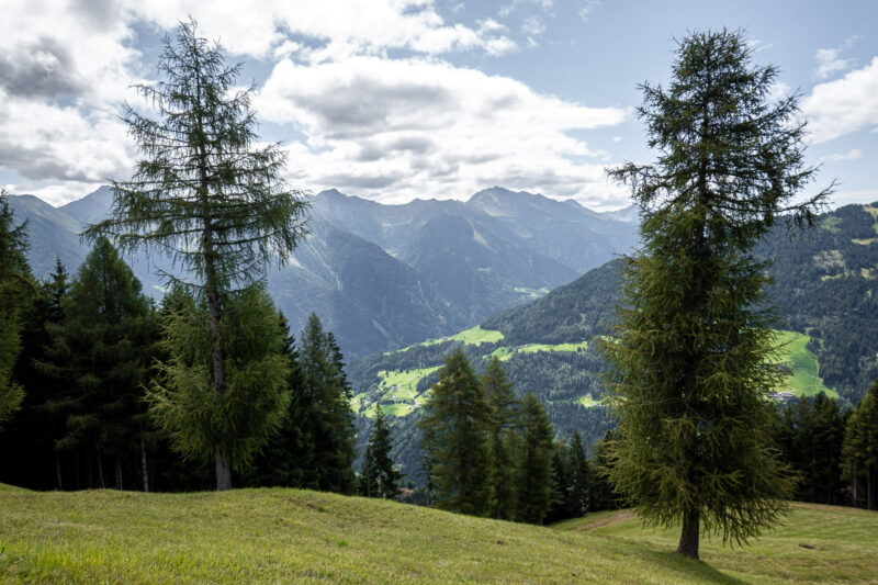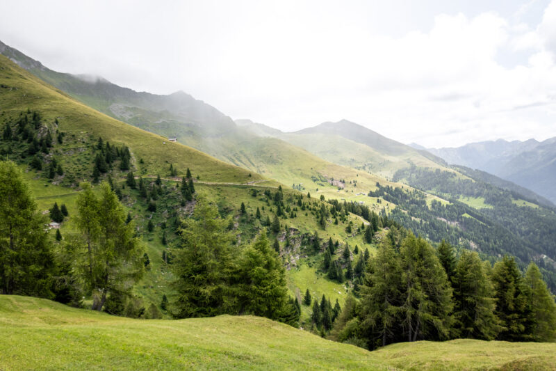 Gemächlich legten wir Schritt für Schritt die Höhenmeter zurück. Zunächst führte der Weg durch dichten Wald, später wurde er flacher, und vor uns eröffneten sich weite Blicke auf die umliegende Bergwelt Südtirols.