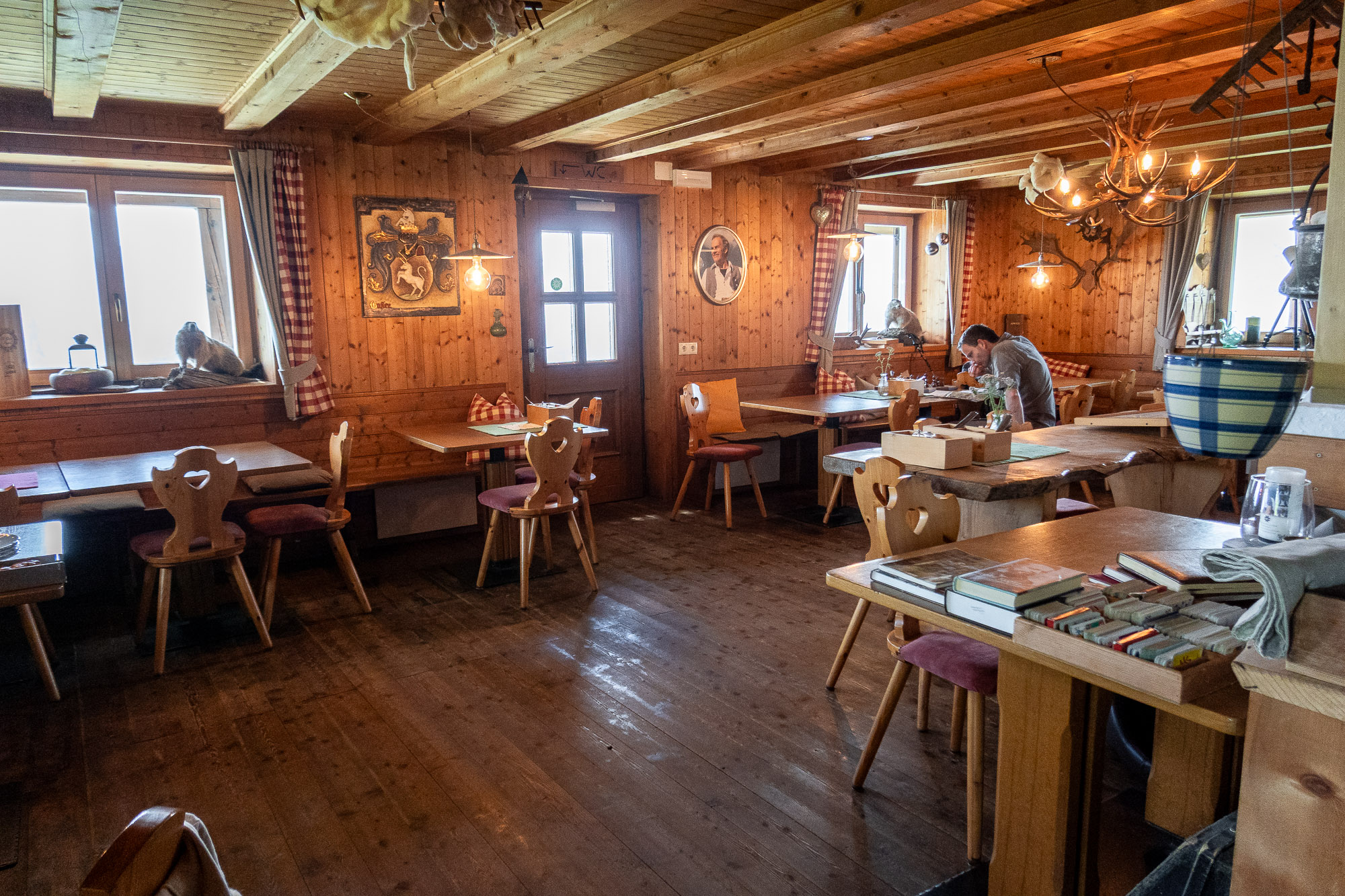 Die Hütte selbst ist ebenfalls wunderschön. Auf 2000 Metern gelegen, machte sie einen sehr gepflegten Eindruck. Man konnte hier alles erleben, was zum Klischee einer Berghütte gehört. Der Hüttenwirt war ausgesprochen sympathisch, und auch wir wären gerne noch länger geblieben. Doch unser Caddy wartete im Tal, und unsere Reise neigte sich dem Ende zu.