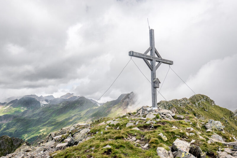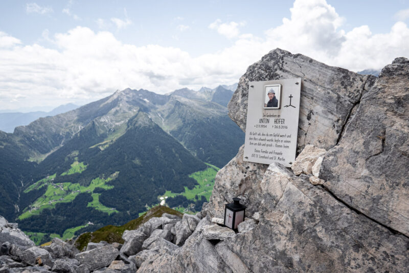 Nur mit Kamera, Handy und einer Jacke ausgerüstet, konnte ich die letzten 500 Höhenmeter schnell überwinden. Schon bald stand ich auf dem Gipfel, der mir eine atemberaubende Aussicht auf die Berge des Passeiertals eröffnete. Ich blieb eine Weile oben und ließ das Panorama in aller Ruhe auf mich wirken.