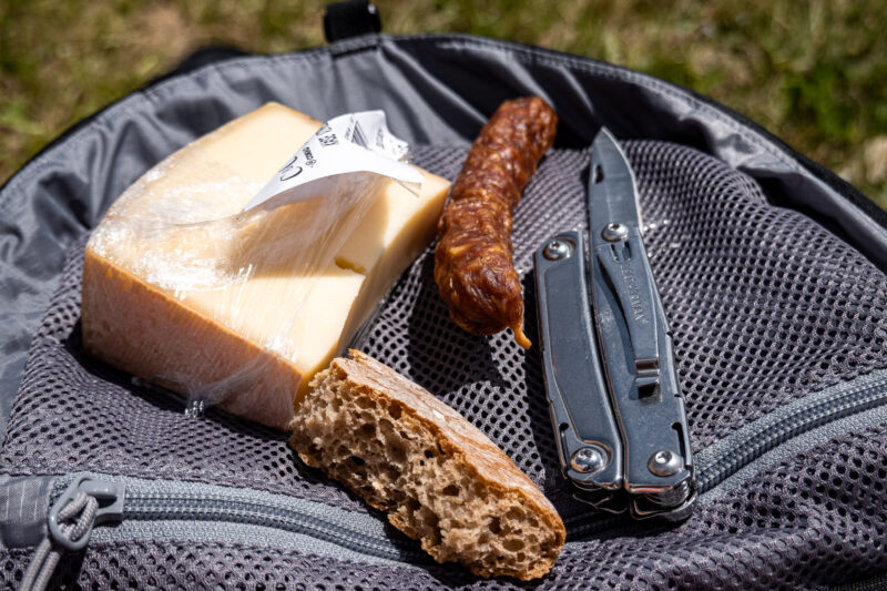 Schon bald fanden wir eine schöne Stelle auf einer der vielen Wiesen, die sich wie ein Balkon an den Berghang schmiegen. Dort ließen wir uns Käse, Wurst und Brot schmecken.