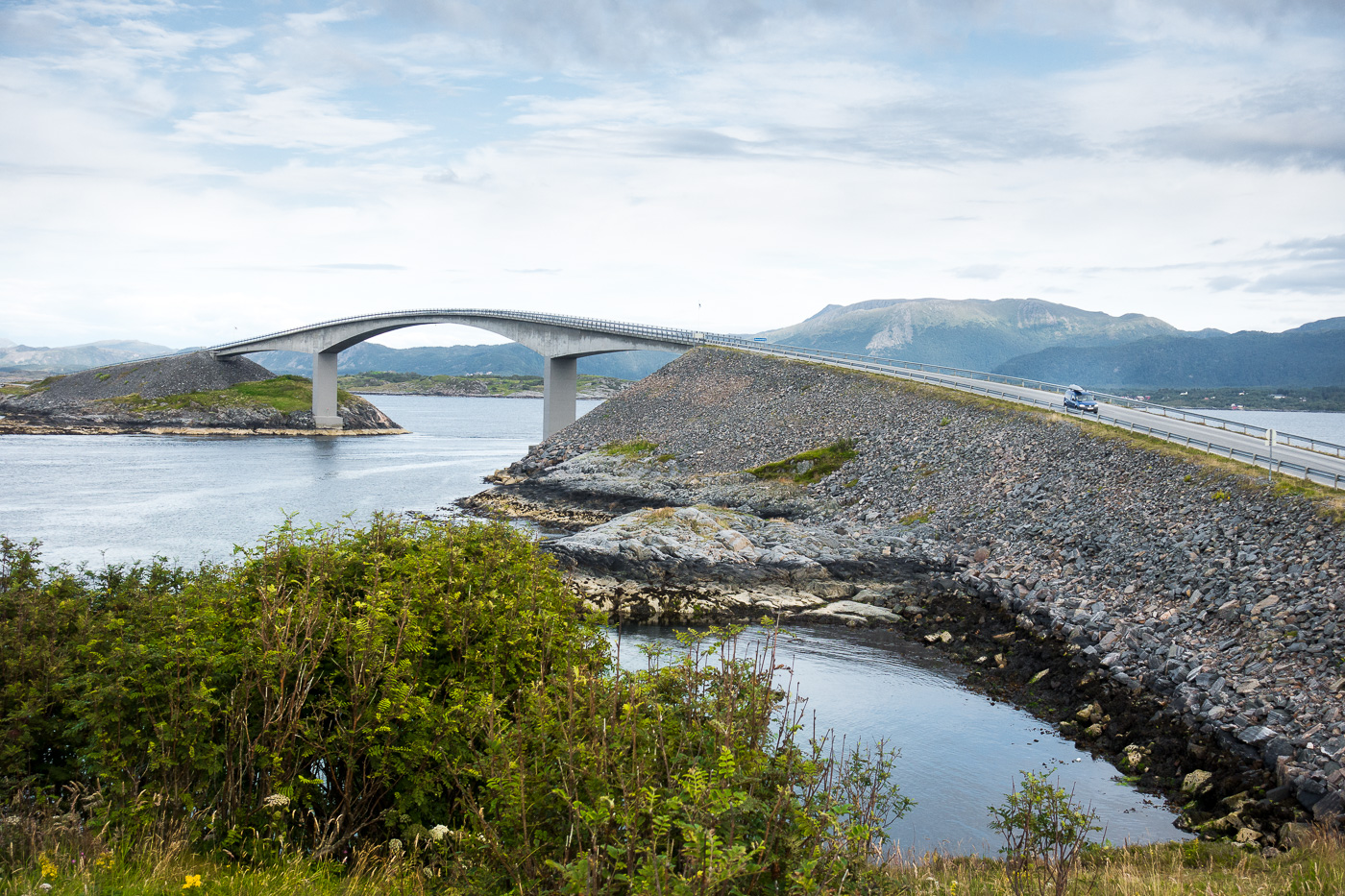 Trotz der gemütlichen Schönheit von Trondheim war dieses Idyll nicht unser Ziel gewesen, welches uns nach Norwegen zog. Vor Jahren habe ich in irgendeiner Zeitschrift oder auf einem Blog Bilder des Atlanterhavsvegen (Atlantikstraße) gesehen und habe mir gedacht, hier muss ich auch einmal stehen bzw. über diese Straße möchte ich auch einmal fahren. Die Straße führt direkt an der Atlantikküste Norwegens über mehrere kleine Brücke von Insel zu Insel. Es ist surreal, in solch einer Landschaft mit Auto zu fahren.
