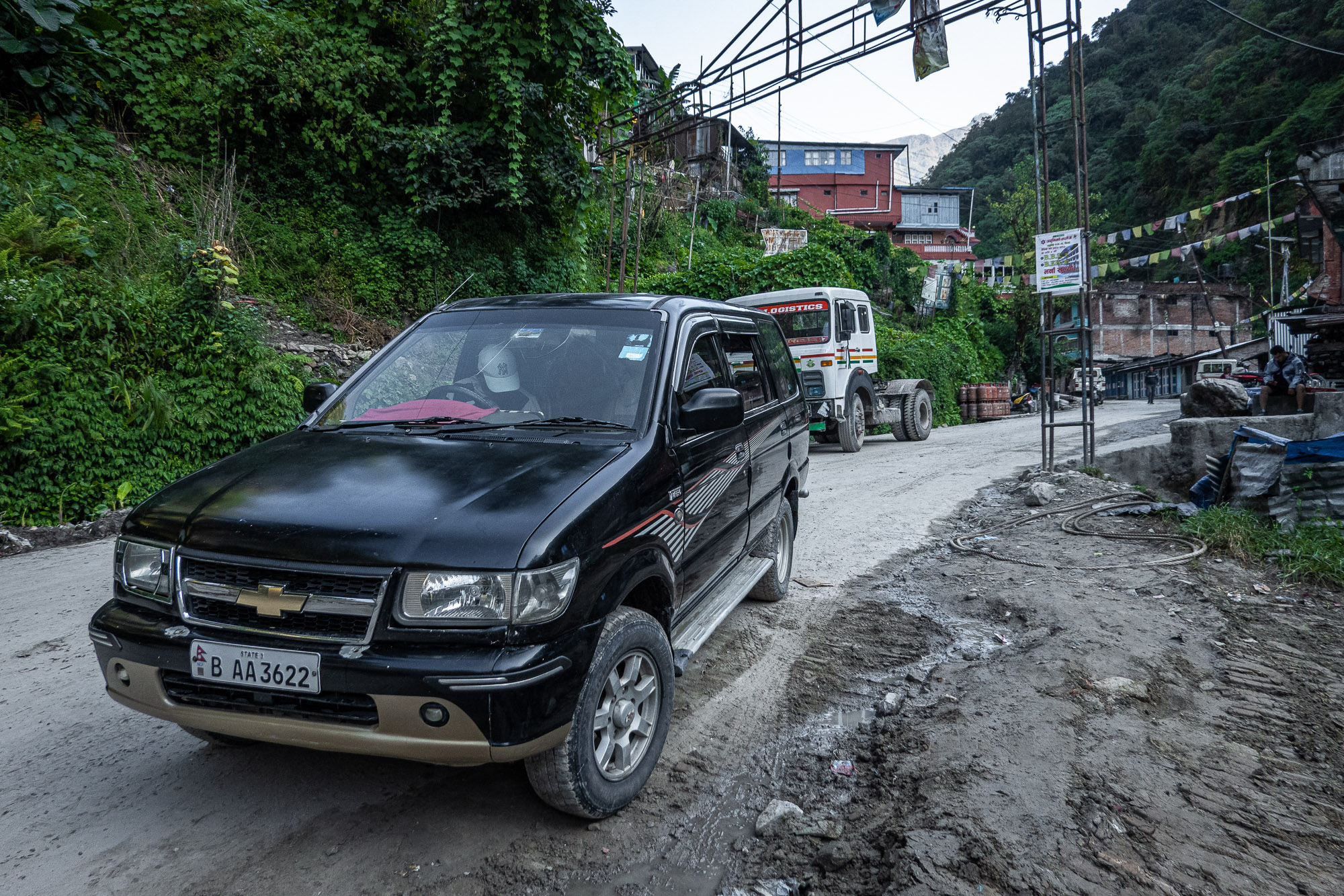 Später übergab er uns an den von Sherry organisierten Fahrer, der uns mit seinem etwas in die Jahre gekommenen Chevrolet nach Kathmandu brachte. Auch hier hat alles wirklich gut funktioniert. Keiner der entsprechenden Menschen hat nach Trinkgeld gefragt, da wir ja alle schon im Voraus bezahlt hatten. Natürlich haben wir ihnen für ihre tolle, freundliche und verlässliche Arbeit trotzdem einen kleinen Bonus gegeben. Der Fahrer hatte sich außerdem sehr über das Snickers aus Tibet gefreut, da die Fahrt schon recht lang und auf jeden Fall abenteuerlich gewesen ist.