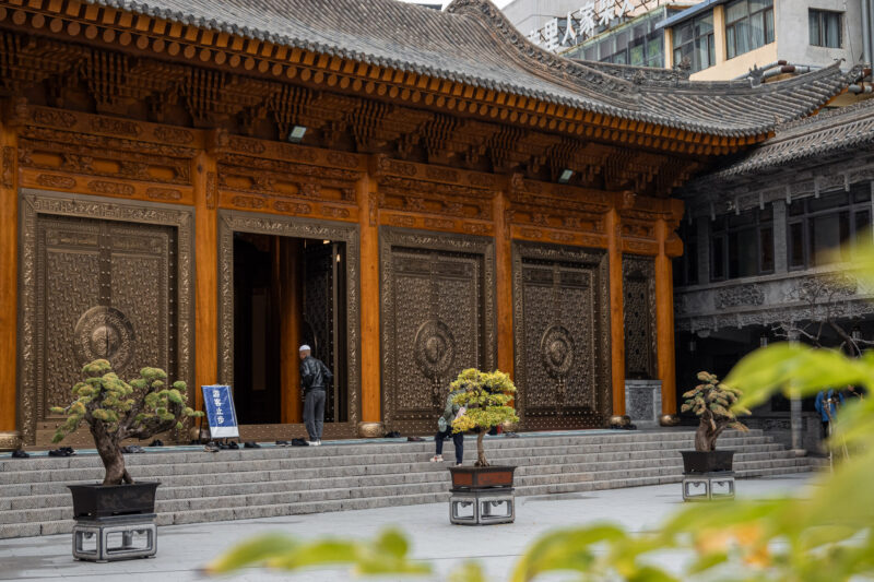 Auch diese Moschee war sehr neu, und wir hatten großes Glück: Der Muezzin rief gerade zum Gebet. Nach und nach kamen die Gläubigen, betraten barfuß die Moschee und begannen zu beten. Es war ein ungewohnter Anblick: Asiatische Menschen in einer Moschee. Dabei vergisst man leicht, dass es in China eine durchaus bedeutende, gemessen an der Gesamtbevölkerung zwar kleine, aber dennoch relevante, muslimische Gemeinschaft gibt.
