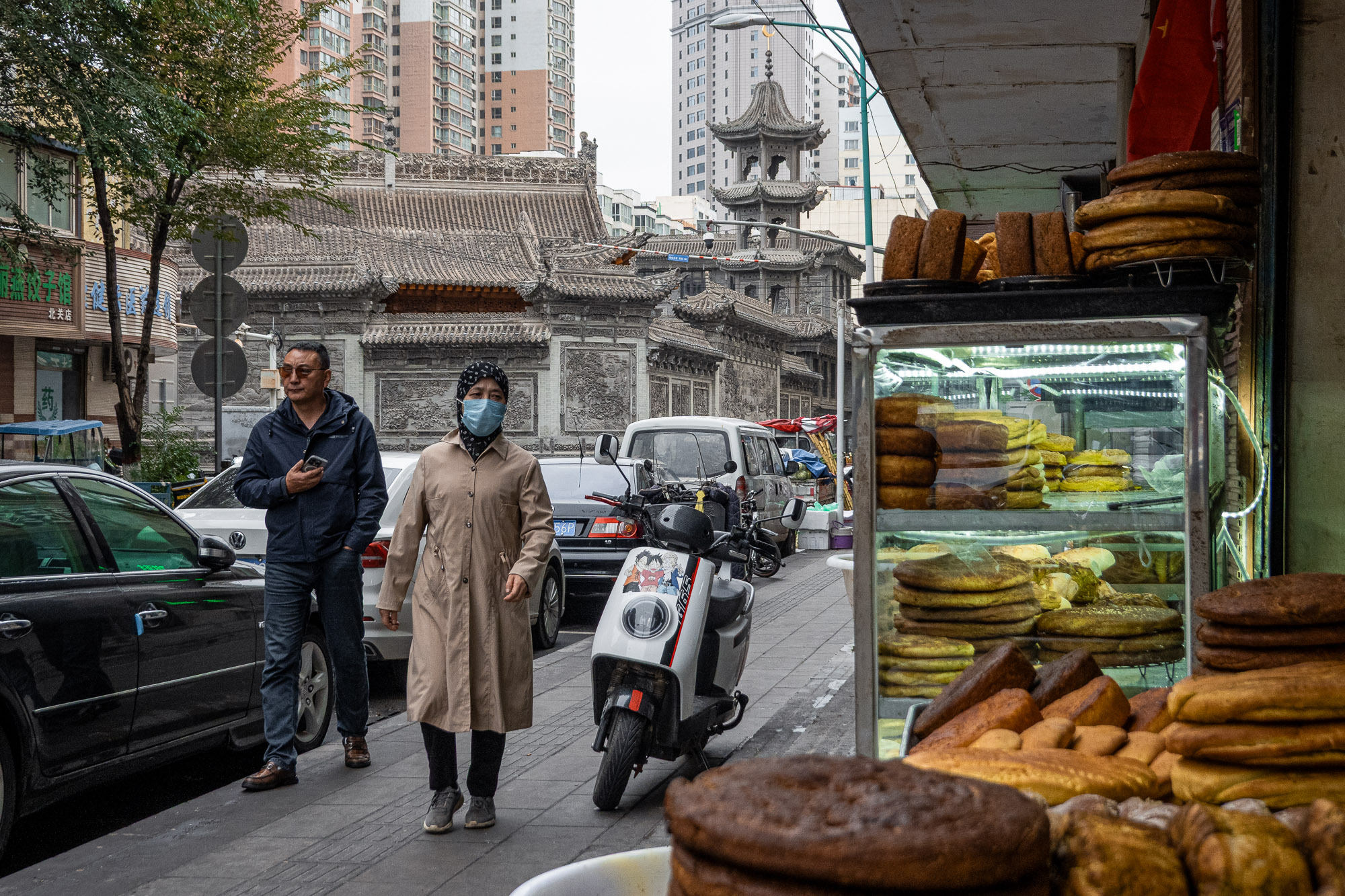 Wenn man sich mit Xining beschäftigt, kommt man an der Dongguan-Moschee kaum vorbei. Nicht nur in der Vorbereitung unserer Reise hörten wir ausschließlich positive Stimmen über sie. An einem Vormittag schlenderten wir eine ganze Weile durch das umliegende muslimische Viertel und beobachteten, wie die Menschen hier lebten. In einer sehr guten Bäckerei kamen wir mit der Verkäuferin ins Gespräch und fragten sie nach ihrem Lieblingsort in Xining. Ihre Antwort kam ohne Zögern: Wir müssten unbedingt die Dongguan-Moschee besuchen – das sei ihr absoluter Lieblingsort. Damit war klar: Diese Moschee stand fest auf unserem Plan.