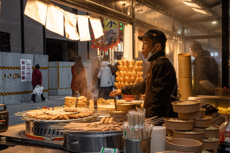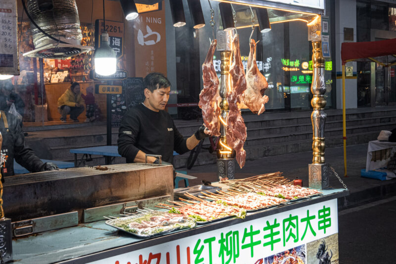 In Xining gibt es vermutlich kein wirkliches Zentrum – zumindest haben wir keines gefunden. Stattdessen findet überall in dieser Millionenstadt ein buntes, lebendiges Treiben statt. Es gibt jedoch einige Orte, an denen sich Touristen wahrscheinlich besonders wohlfühlen würden: Plätze, an denen man gutes Essen kaufen, über Märkte schlendern oder sich einfach treiben lassen kann.