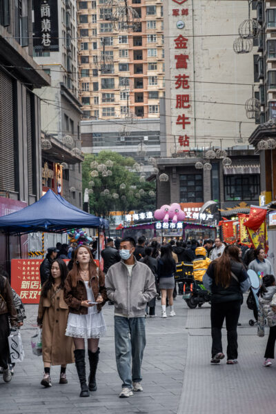 Das Treiben war bunt, eng und doch genau so, wie man es sich in einer chinesischen Stadt vorstellt. Man mag es kaum glauben: Trotz der vielen Menschen fielen wir auf. Wir bemerkten, wie die Blicke der Passanten förmlich an uns klebten. Sie schauten uns an, blickten uns hinterher – und das ganz unverhohlen. Ihr Interesse an uns war deutlich spürbar.
