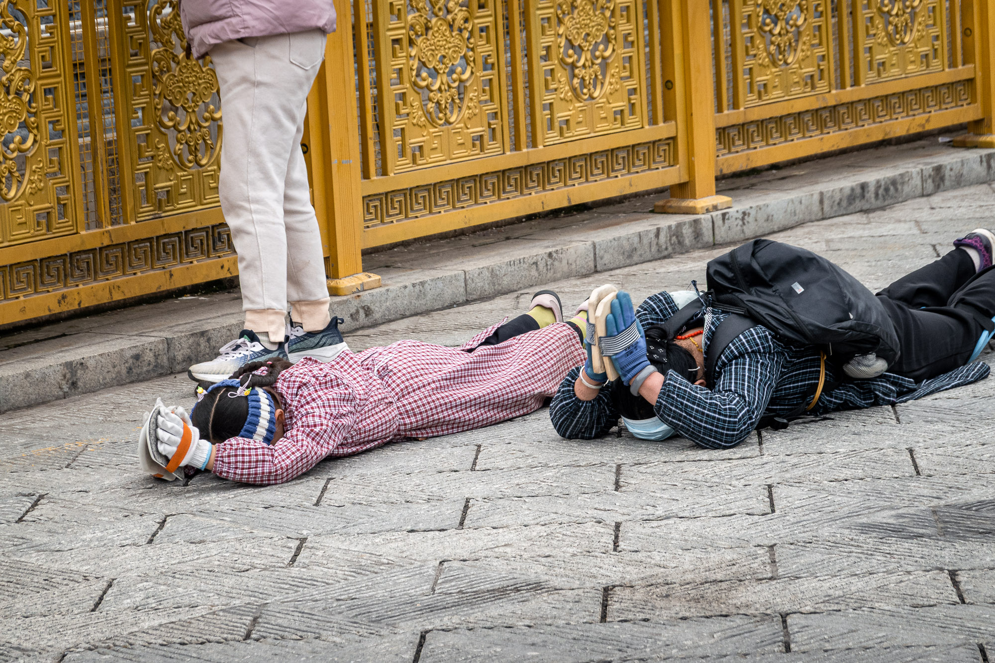 Ich kannte diese Niederwerfungen bislang nur von Fotos, die andere Reisende mit nach Deutschland gebracht und auf Vorträgen gezeigt hatten. Nun konnte ich dieses buddhistische Ritual mit eigenen Augen sehen. Was für ein unvergesslicher Moment es war, Menschen mit einer solchen Konzentration und Überzeugung bei der Ausübung ihres Glaubens zu beobachten.